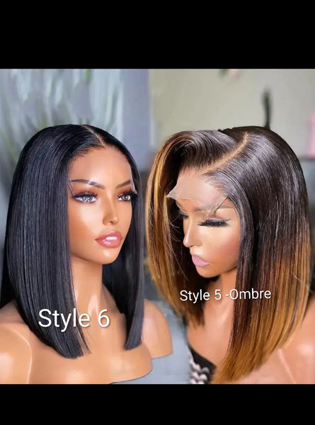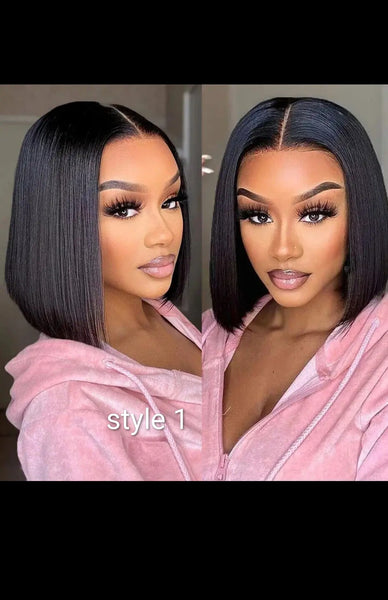 100% human raw hair bone straight bob Wig